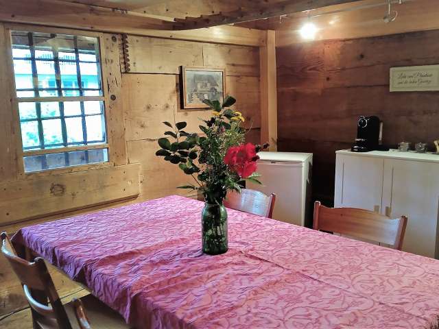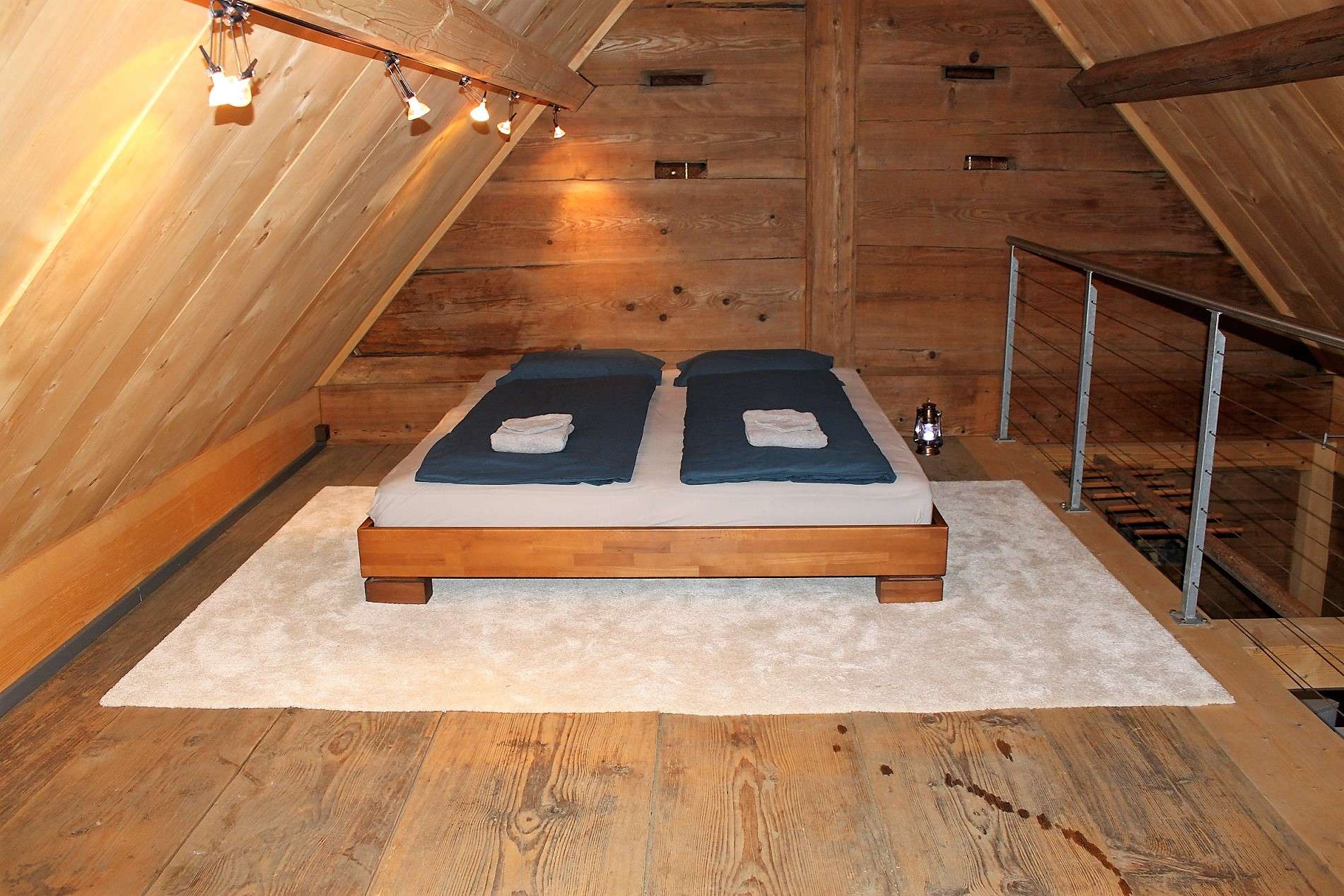 Der Spycher eignet sich zum Übernachten für zwei Erwachsene und zwei Kinder ab ca. 6-8 Jahren. Die Treppen innerhalb des Spychers sind sehr steil und stellen Sturzgefahren dar. Der Spycher ist daher für Kleinkinder eher ungeeignet. Was erhalten werden konnte, wurde bewahrt und ist Modern und hell ausgeleuchtet. Da der Spycher nicht isoliert, steht eine kleine Elektro-Heizung und ein Ventilator zur Verfügung. Im ersten Stock befindet sich ein Esstisch, eine Nespresso Kaffeemaschine inklusive Kapseln, ein Kühlschrank, ein Schrank mit Geschirr, Gläser, ein Sofa mit Tisch und Bücher zum Verweilen. Im zweiten Stock steht das 180x200cm Bett auf der Galerie. Duvets und Kissen inklusive Bettäsche sind vorhanden. Falls mehr als zwei Personen übernachten möchten, kann das Bettsofa im Wohnzimmer benutzt werden. Die Toiletten und Kochgelegenheit befindet sich im Aussenbereich, respektive in einem Nebengebäude hinter dem Spycher. Übernachtungen sind nur von Mai bis Oktober möglich, je nach Witterung.