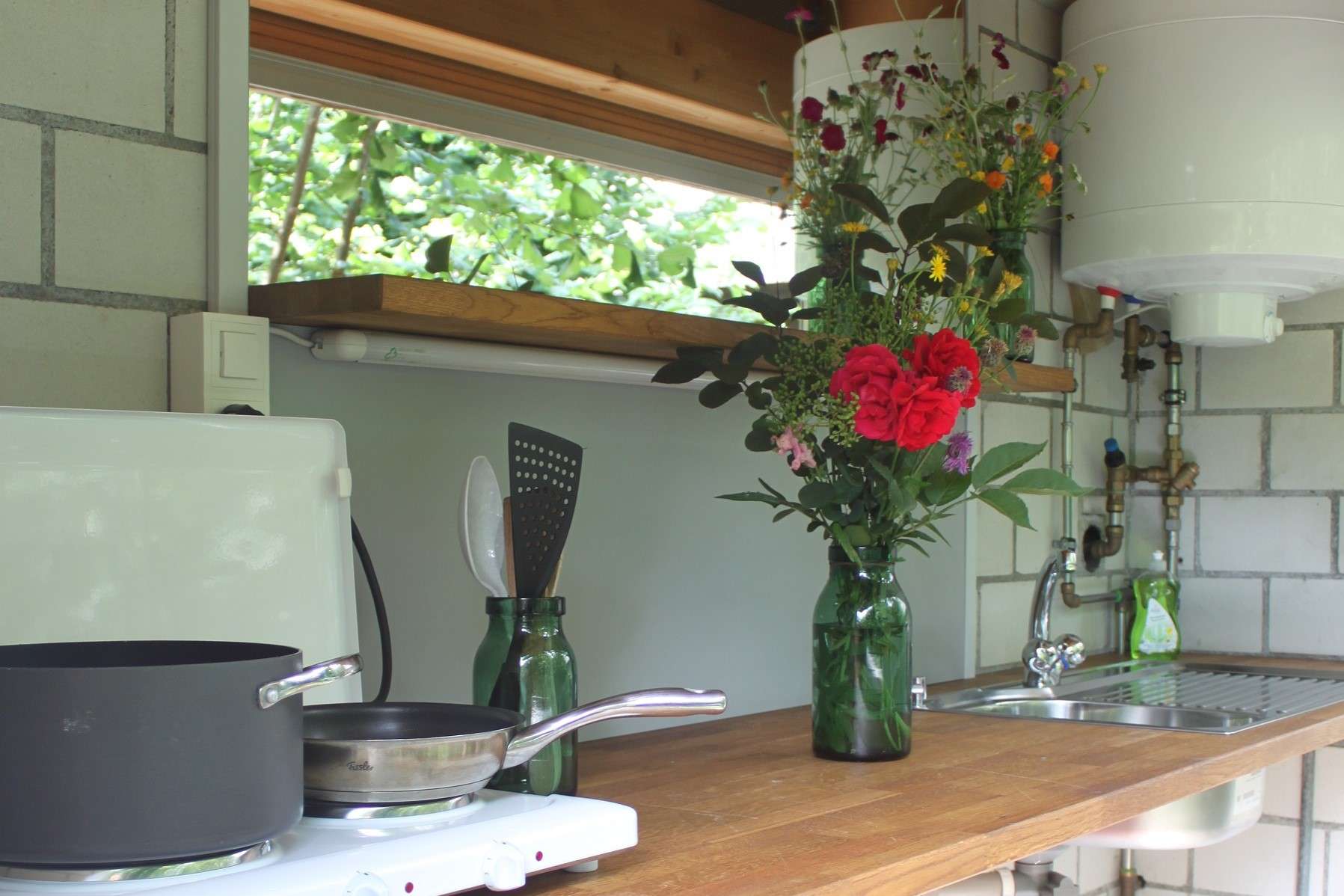 Der Wohnwagen, mit Blick auf eine grüne Wasserwiese und mit ein wenig Glück sogar ein paar galoppierende Pferde, bietet Platz für zwei erwachsene Personen. Aus der Sitzgruppe beim Eingang kann ebenfalls eine weitere Schlafmöglichkeit gemacht werden. Die mit den Spychergästen gemeinsam genutzten Toiletten und der Küchenbereich befinden sich ausserhalb des Wohnwagens.