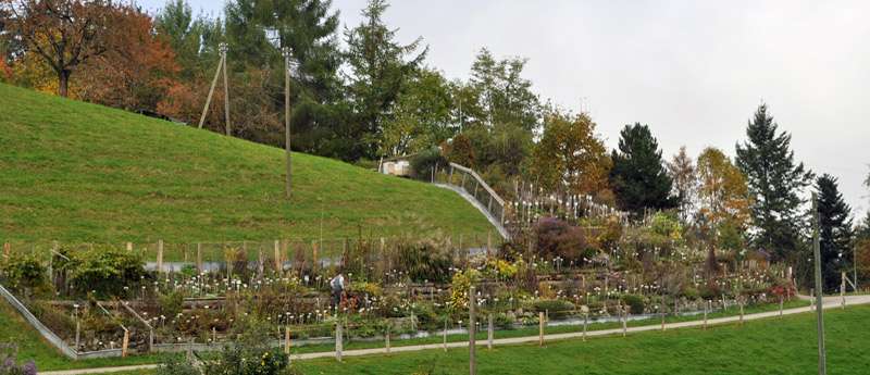 Kein Pflänzchen ist zu klein, kein seltener Grashalm und kein Stäudelchen ist zu unscheinbar, um von Hans Zaugg nicht gesammelt, liebevoll gepflegt, mit einem Schild versehen und in all seinen Eigenschaften eingehend studiert zu werden. Und dann ist da noch die «Insektenpulverpflanze» (Chrysanthemum cinerariifolium), aus der das organische Insektizid Pyrethrum hergestellt wird. Es ist eine kleine Chrysanthemen-Art mit weissen Blüten. Und ich staune über einen mannshohen Urweltmammutbaum (Metasequoia glyptostroboides). Der Bauer lacht: «Der Baum weiss dänk nicht, dass wir uns auf 740 Metern über Meer befinden!» Eindrücklich blüht die Otto-Froebel-Pfingstrose mit ihren ungefüllten Tellerblüten. Die Bienen baden in ihren goldenen Staubfäden ebenso, wie sie sich im Klatschmohn nebenan tummeln. Der rüstige Rentner wertet nicht. Für ihn sind alle Kräuter interessant, alle Blumen sind auf ihre Art schön, jedes Blättchen hat etwas für sich.