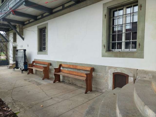 Picknick ist für Schulklassen auf der gedeckten Terrasse und der gedeckten Holzbrücke möglich.