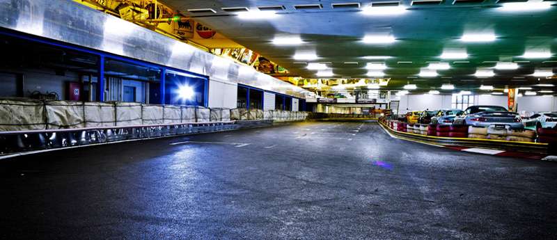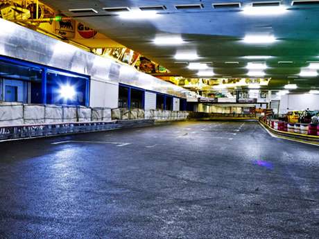 Die Indoor Rennstrecke ist von der Grösse und von der Atmosphäre her unvergleichbar und einzigartig. Die Strecke ist 630 Meter lang und 8 Meter breit. Der Asphaltbelag vermittelt ein tolles Renngefühl. Das Überholen ist problemlos möglich und das Fahren macht sowohl Erlebnissuchenden als auch echten Profis Spass. Auf der Piste können bis 25 Karts miteinander fahren.