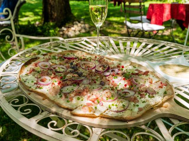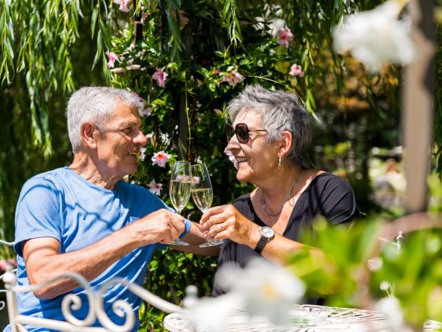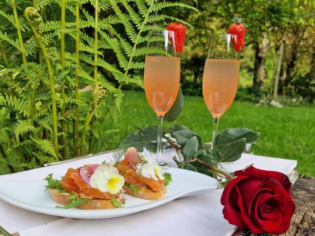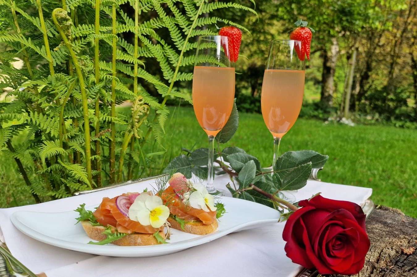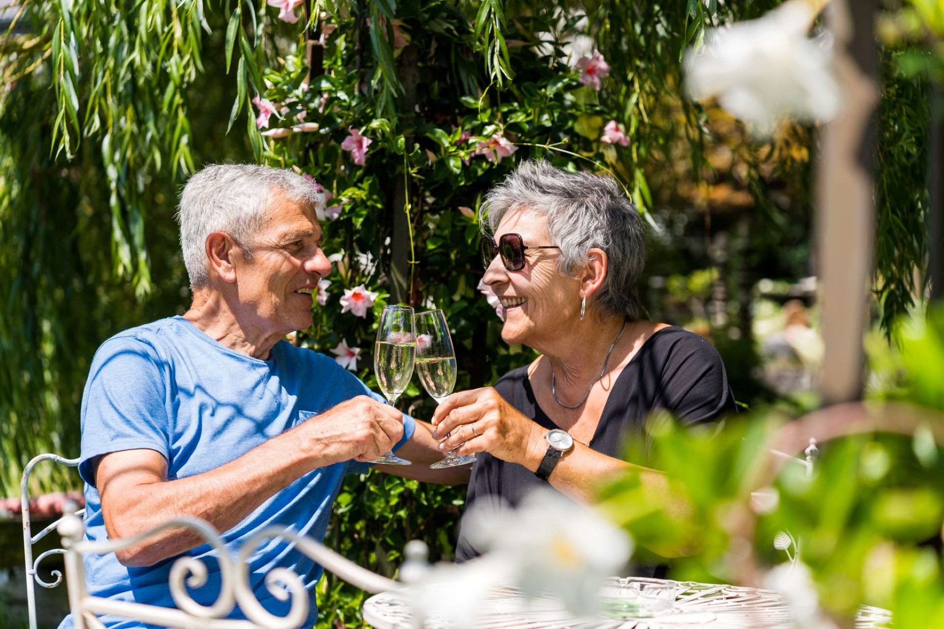 Mann geniesst Speisen die aus regionalen Frischprodukten mit Liebe zubereiten und mit einem Lächeln serviert werden. Für naturbelassene und gesunde Wasserqualität sorgt heute die Grander Wasserbelebungsanlage. Ob Frühstück im Garten, Übernachtung im Bürgisweyerbad Paradies oder eine romantische Überraschung mit dem Rosenflirt-Angebot – im Bürgisweyerbad ist für jeden Gaumen etwas dabei.