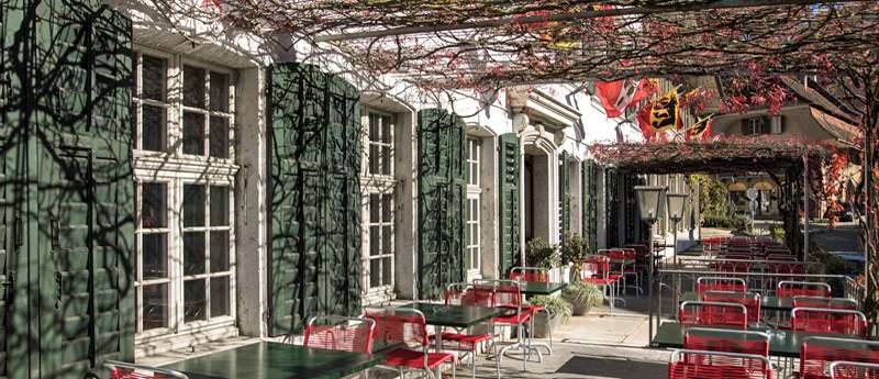 Das historische Kreuz mit Inschrift 1787 ist wieder Hotel, Konzertlokal, Restaurant, Bar, Treffpunkt für Jung und Alt, Festsaal und Kulturort geworden.
