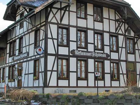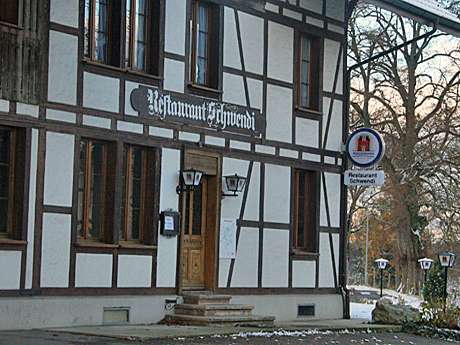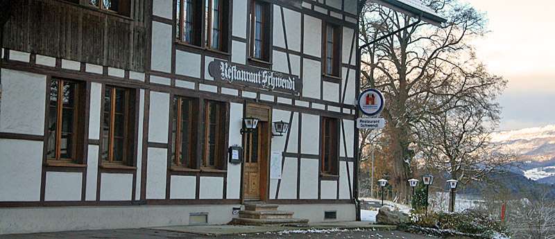 Der markante Riegelbau lädt zum Einkehren ein. Im Sommer grosse, ruhige Gartenterrasse unter schattigen Bäumen mit Kinderspielplatz.