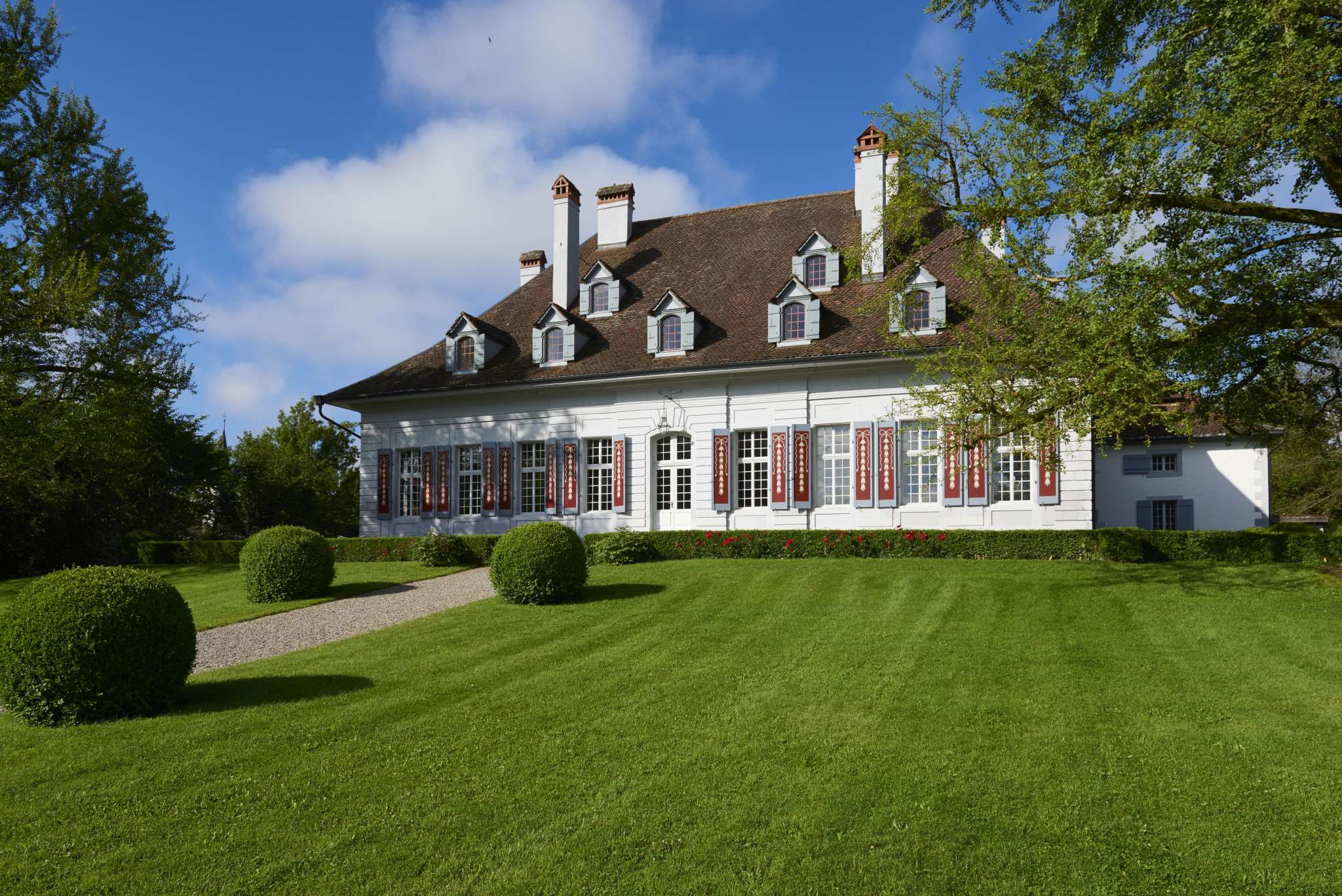 Das Schloss wurde 1713 - 15 erbaut nach Plänen des berühmten Pariser Architekten Joseph Abeille. Baumeister war Abraham Jenner aus Bern. Die Fachliteratur spricht von einer „genialen Bauidee" und von „vorbildlicher Bauart" des französischen Barocks im Stile Louis XIV. Der patrizische Bauherr, sagenhaft in Reichtum wie Lebensstil, liess an der grosszügigen Anlage samt Park und Gärten an nichts mangeln.