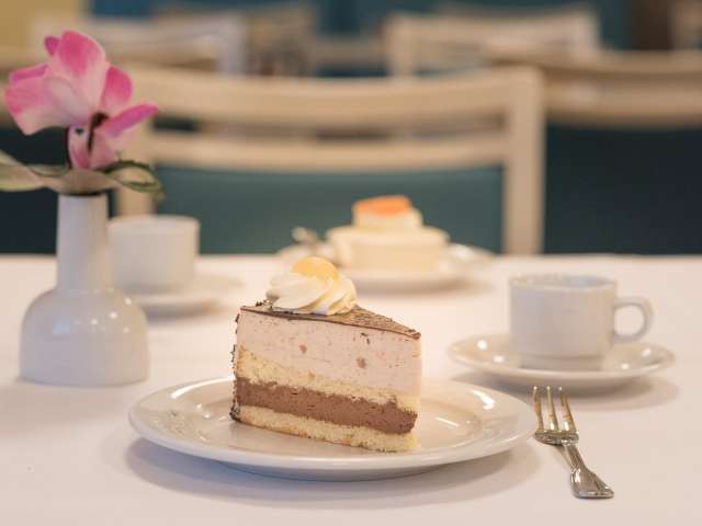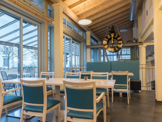 Das Café-Restaurant bietet Ihnen täglich mit Liebe zubereitete Mittagsmenüs, ein grosses Salatbuffet und viele Köstlichkeiten aus der hauseigenen Patisserie an.