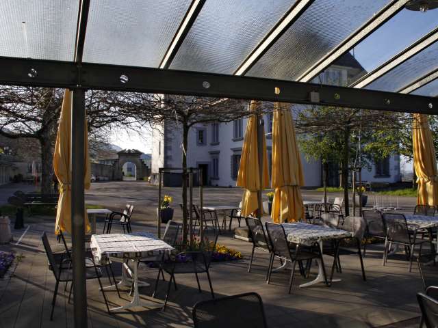 Gönnen Sie sich eine Pause im Café-Restaurant Schlosshof und geniessen Sie den fantastischen Ausblick über das ganze Mittelland und die Bergkulisse des Berner Oberlands. Besuchen Sie den gepflegten Schlossgarten und lassen Sie sich auf der Sonnenterrasse im Schlosshof verwöhnen.