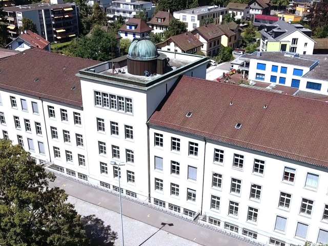 Im Observatorium steht ein mittelgrosses 16-cm Linsenfernrohr für Beobachtungen mit blossem Auge von Sonne, Mond und Planeten. Für lichtschwache Objekte wie Galaxien oder Gasnebel wird ein parallel montiertes 36-cm Spiegelteleskop kombiniert mit hochsensiblen Spezialkameras verwendet. Mit dieser Technik werden Besucher Livebilder auf einem Monitor oder Beamer im Physikzimmer bestaunen können, die mit blossem Auge nicht oder kaum sichtbar sind.