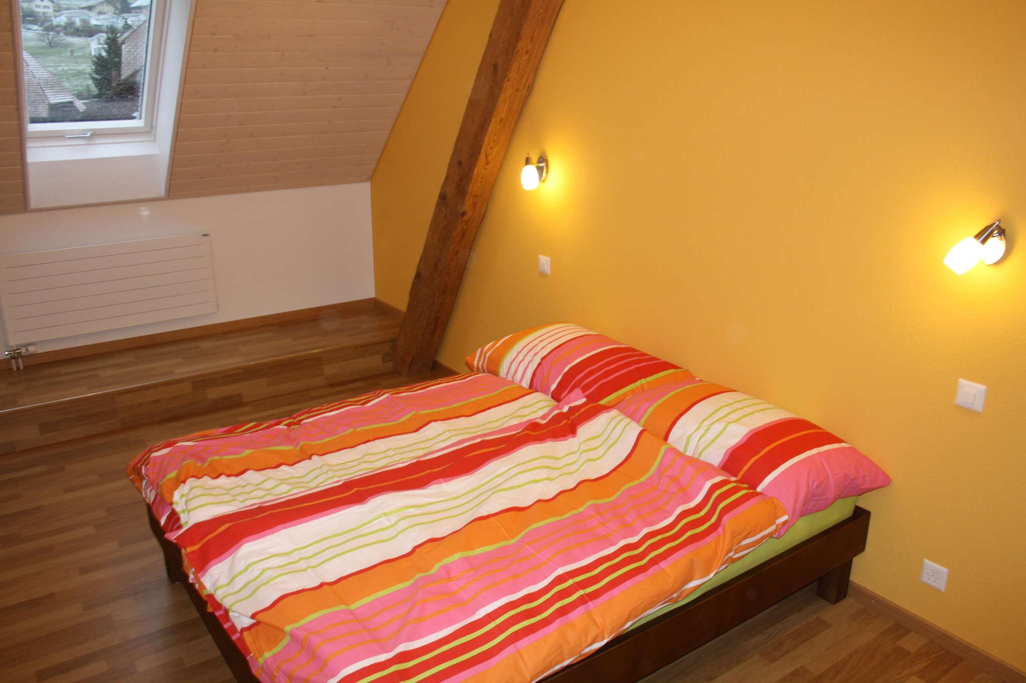 In unserem gepflegten Berner Bauernhaus befinden sich zwei gemütliche Doppelzimmer mit separatem Eingang, diese wurden mit viel Liebe zum Detail eingerichtet. Zur Erholung finden Sie am Biotop und im Garten genügend Raum.