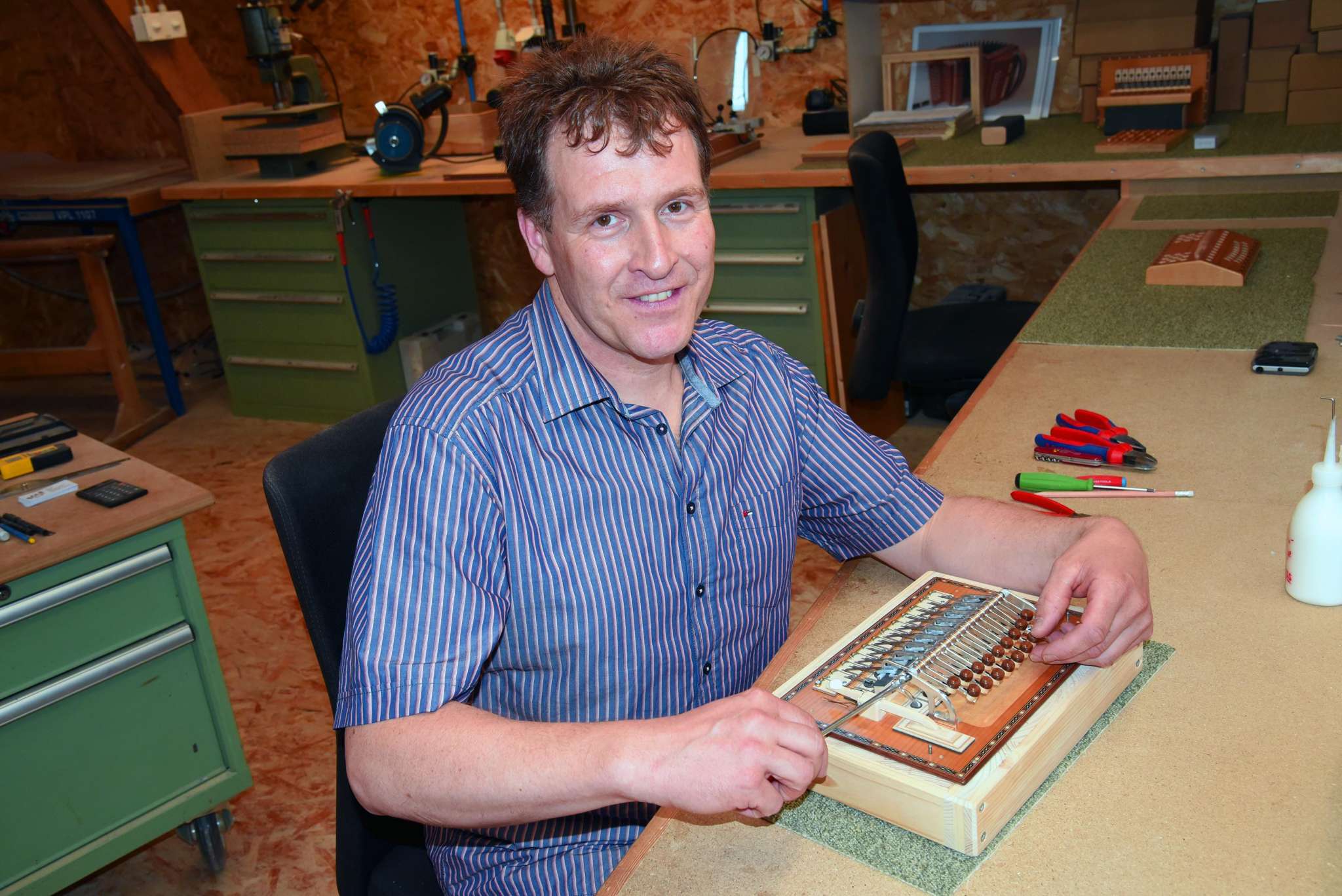 In der Schreinerei auf dem Bauernhof im "Mösli" werden Sie staunen. Die Produktionsstätte der Schwyzerörgeli macht klar: Hier arbeitet jemand, der grossen Wert auf Disziplin, Präzision und Qualität legt.