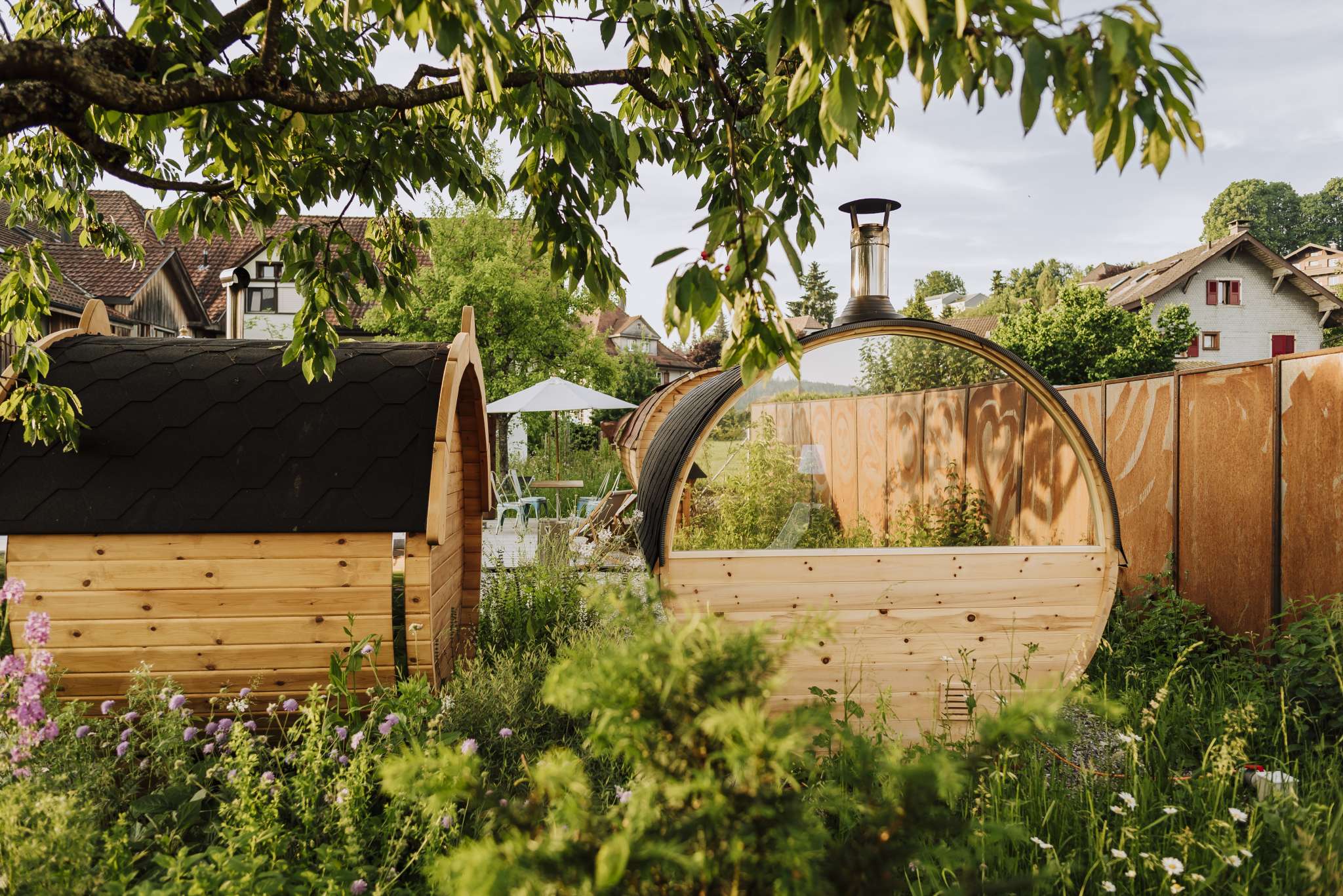 Das idyllische Gelände im Bernischen Roggwil, bietet Ihnen einen stimmungsvollen Einstieg in den «bodennahen Luxus», also das Geniessen mit einfachen Mitteln und edlen Materialien. Eine Auswahl an Saunen zeigt Ihnen, wie Wärme und Wellness sich in Ihren Garten einfügen können. Die Feuerzunge zelebriert die Kunst des rauchlosen Feuers und des eleganten Grillplatzes. Mit dem Wohnfass zeigt sich der ganze Schalk des einfachen Lebens, nach dem wir uns immer wieder sehnen. Und mit dem Hot Tub werden die innigen Momente aus warmem Wasser und innerer Einkehr wach.