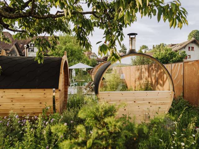 Der Erlebnisgarten ist da für Sie, als Ausstellungsbereich, aber auch als Eventlocation, die Sie mieten können. Saunen, Hot Tubs und Feuerzunge stehen Ihnen auf Voranmeldung zur Verfügung. Sogar das Wohnfass ist Ihres für eine Nacht oder mehr, wenn Sie das wünschen.