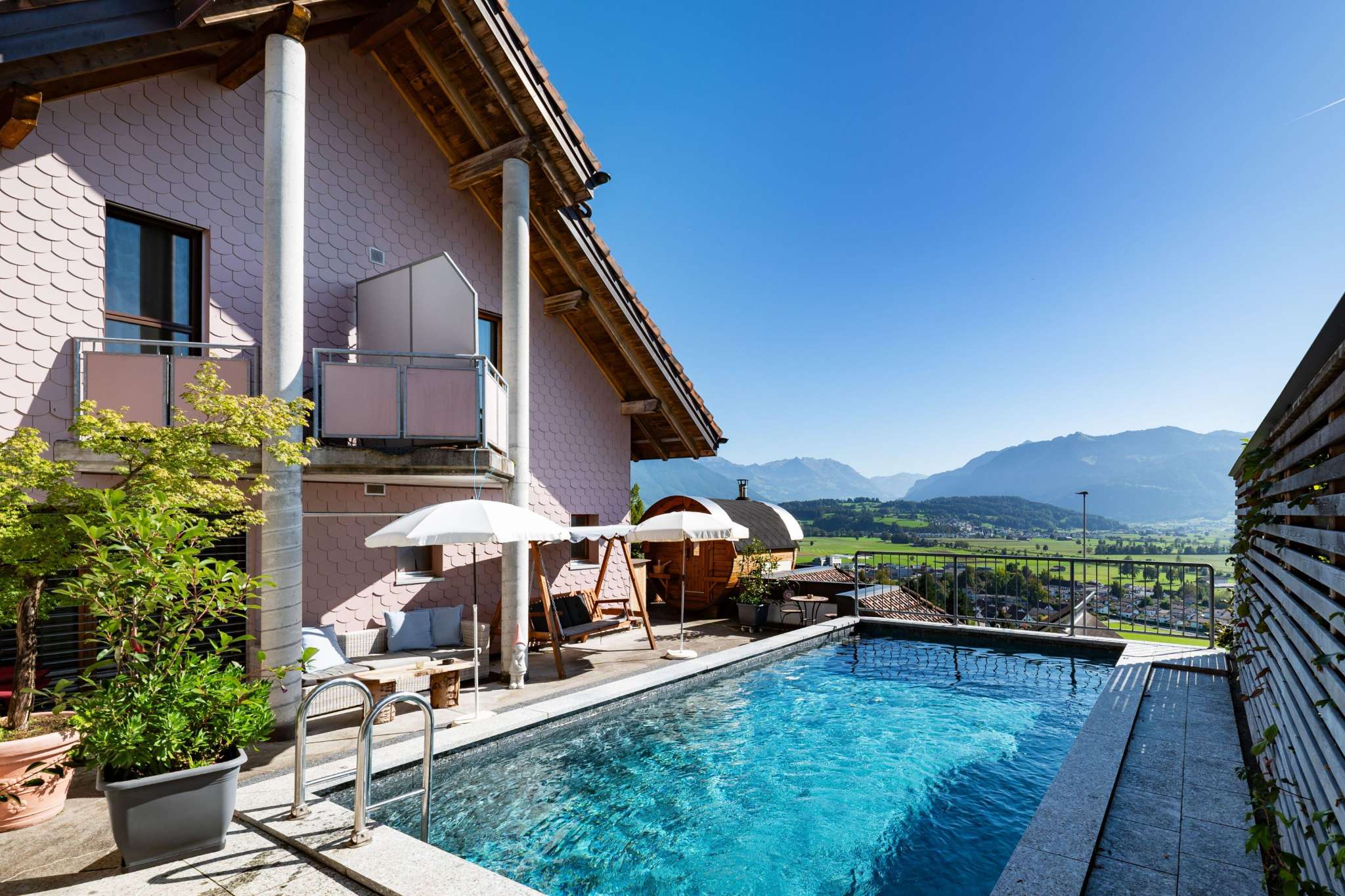 Ein vielseitiger Familienbetrieb mit allerlei Spezialitäten. Buräschüblig, Trockenfleisch und Salami, hausgemachte Glace mit der Milch vom Bauernhof nebenan und das alles mit wunderbarer Aussicht auf die Linthebene. Unsere Hotelgäste geniessen ein grosszügiges Frühstücksbuffet mit regionalen Produkten und können sich in der kleinen Wellnessoase mit Swimmingpool, Sauna und Wihrlpool. Zudem steht ein geschlossener und gedeckter Verloraum mit Ladestationen, Werkzeug und Pumpe zur Verfügung.