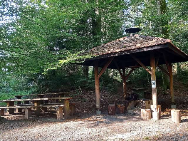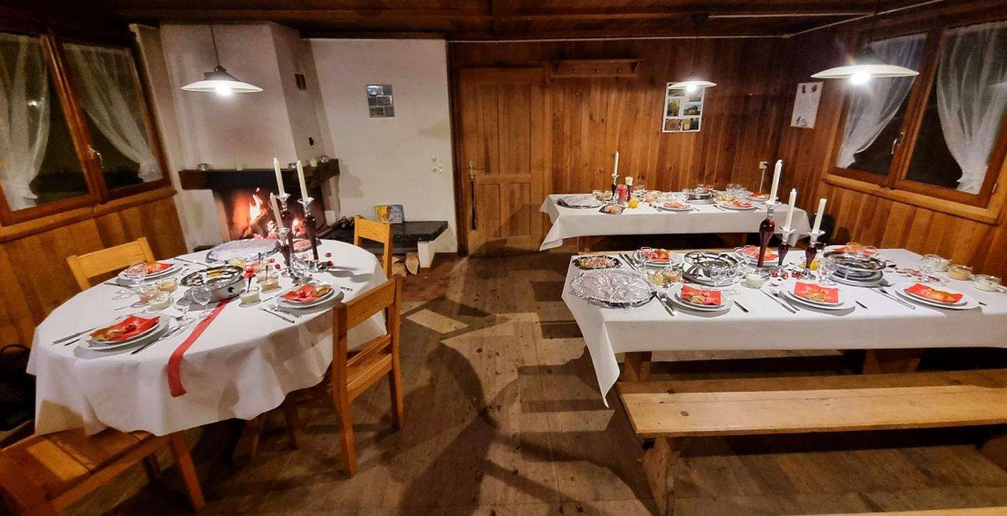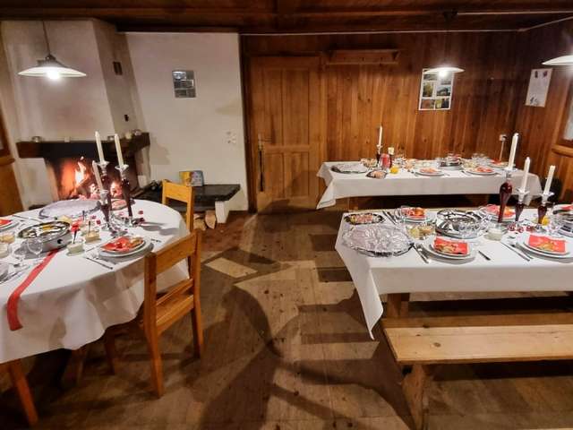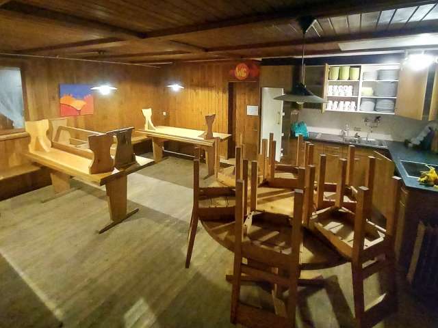 Der Innenraum bietet für ca. 25 bis 30 Personen Platz. Es hat eine Kochnische mit allem was dazu gehört (Geschirr, Besteck, Kochherd, Backofen, Kühlschrank) und ein Cheminée. Aussen befindet sich eine gedeckte Grillstelle und weiteren Sitzgelegenheiten.