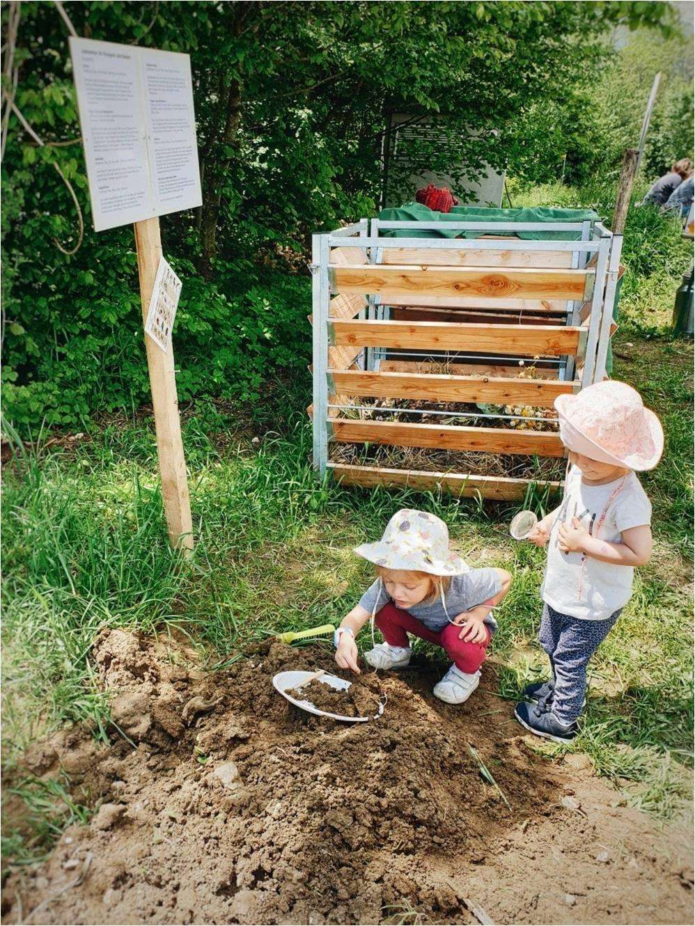 Schulklassen können Unterrichtseinheiten zum Thema «Mein Essen wächst nicht im Supermarkt» buchen. Die Schulkinder lernen die verschiedenen Schritte der Lebensmittelproduktion, wie Saatgut, Boden, Bestäubung oder Kompostieren kennen.