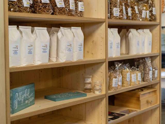 Zulligers bauen Dinkel, Weizen (alte Sorte) und Roggen an. Dieses Getreide wird in der Mühle steingemahlen und zu verschiedenen Mehlsorten verarbeitet.
